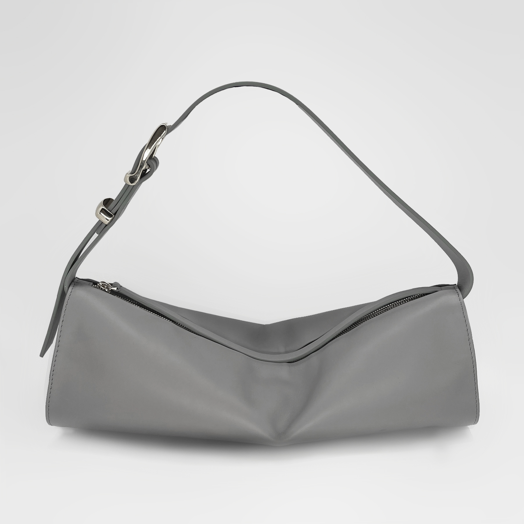 Коктейльная сумка из мягкой наппы. Лаконичный дизайн уравновешивает массивная серебряная пряжка, которая берёт на себя роль ювелирного украшения.