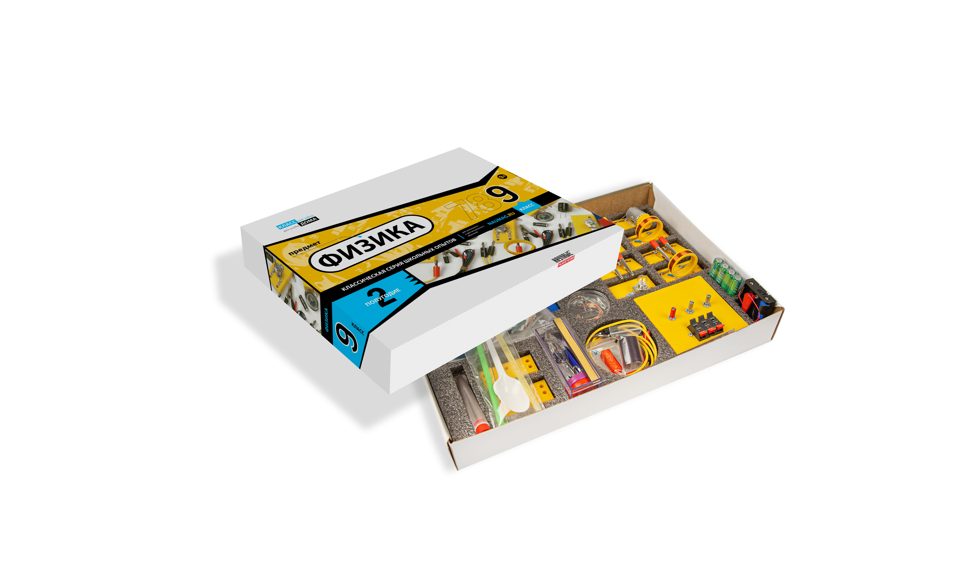 В набор входят теоретический материал и оснащение для практики обучения в виде опытов. Все описанные в наборе эксперименты и лабораторные работы (всего более 100) отражают содержание школьной программы 9 класса во 2 полугодии.