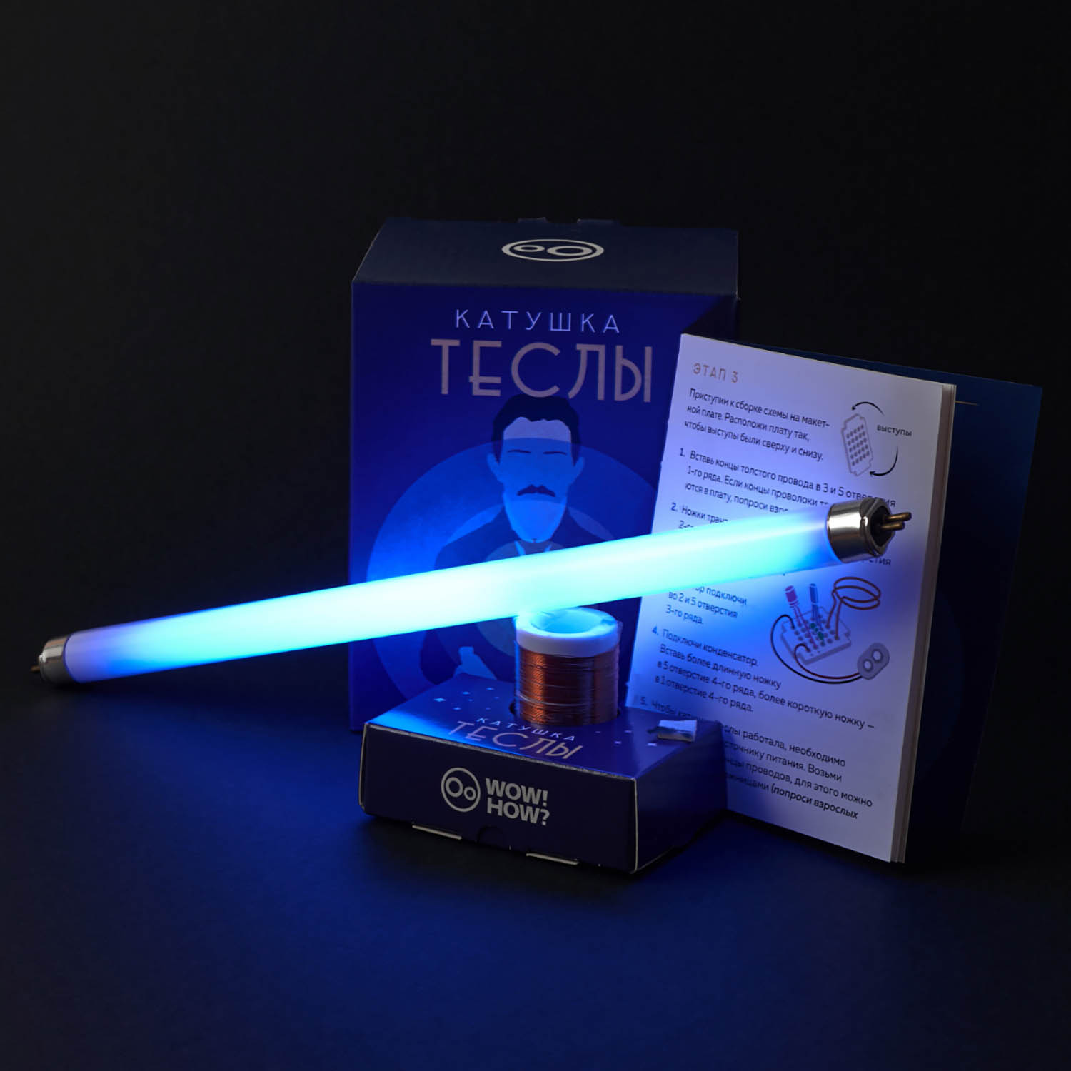 Набор экспериментов, позволяющий своими руками собрать удивительное по красоте и поражающее своей простотой демонстрационное устройство – настоящую катушку Теслы. Набор позволит получить научный опыт детям, интересующимся физикой и электроникой. Они узнают, как работает передача энергии на расстояние без проводов, зачем нужны транзисторы и можно ли получить напряжение в 1 000 В из обычной батарейки.