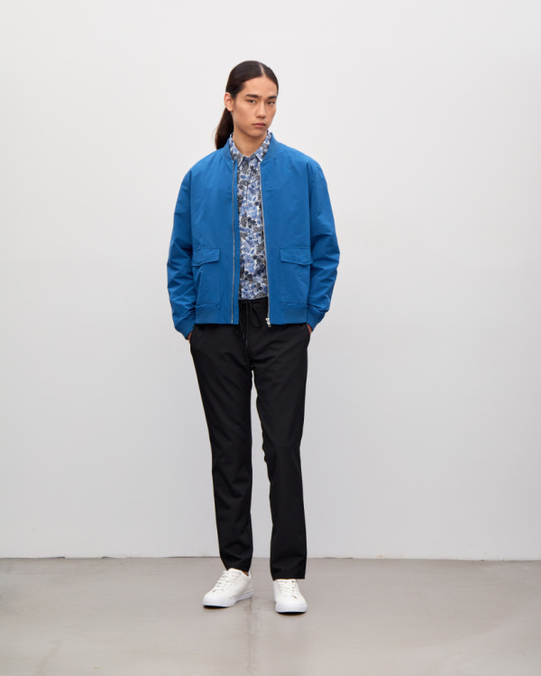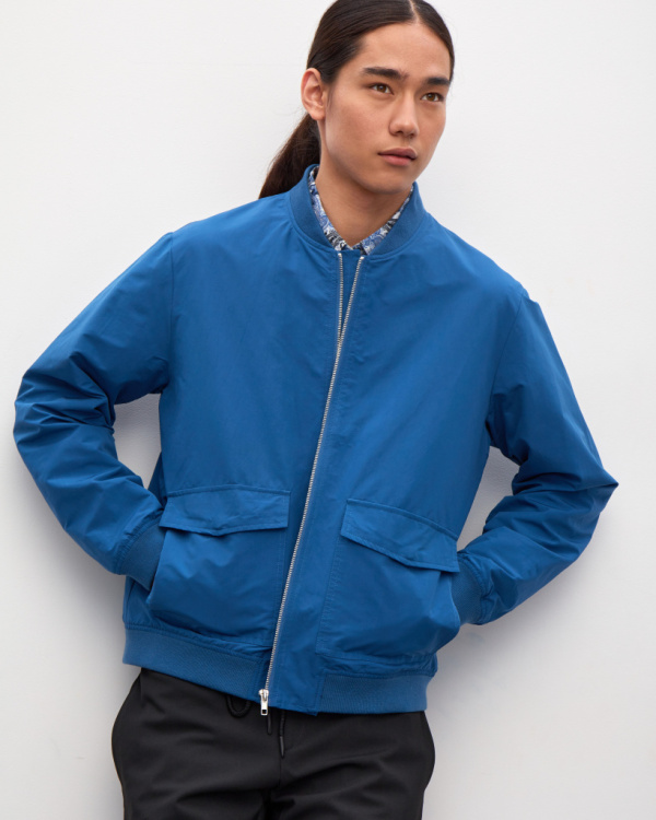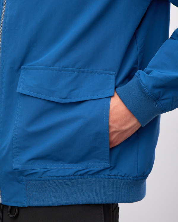 Куртка мужская, свободного кроя, с накладными карманами и застежкой на молнию. Трикотажная отделка на воротнике и манжетах. Демисезонная модель из смесового хлопка однотонного цвета.