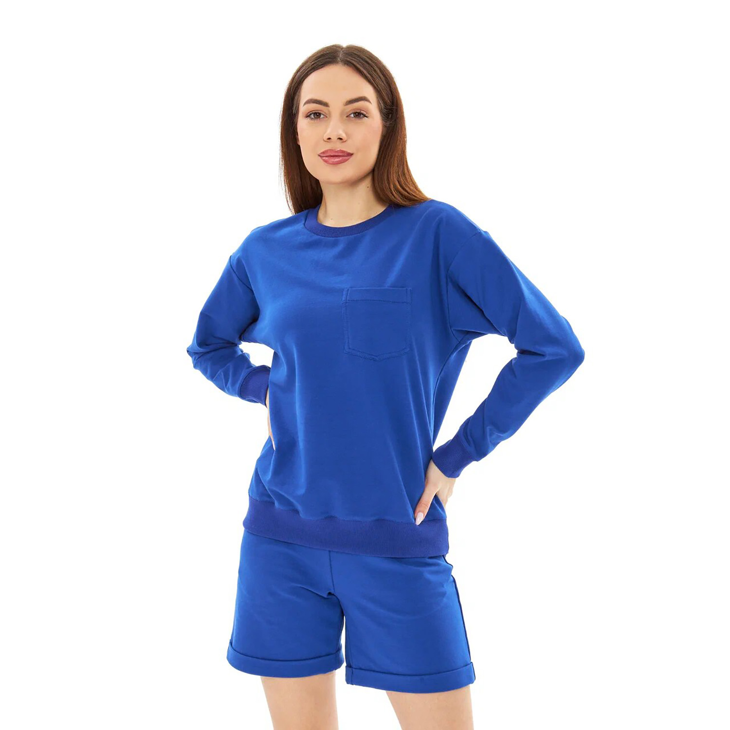 Свитшот – базовая вещь, которая должны быть в любом гардеробе. Модель выполнена из турецкого трикотажа – двухниточного футера. Свободный крой свитшота скроет несовершенства фигуры.