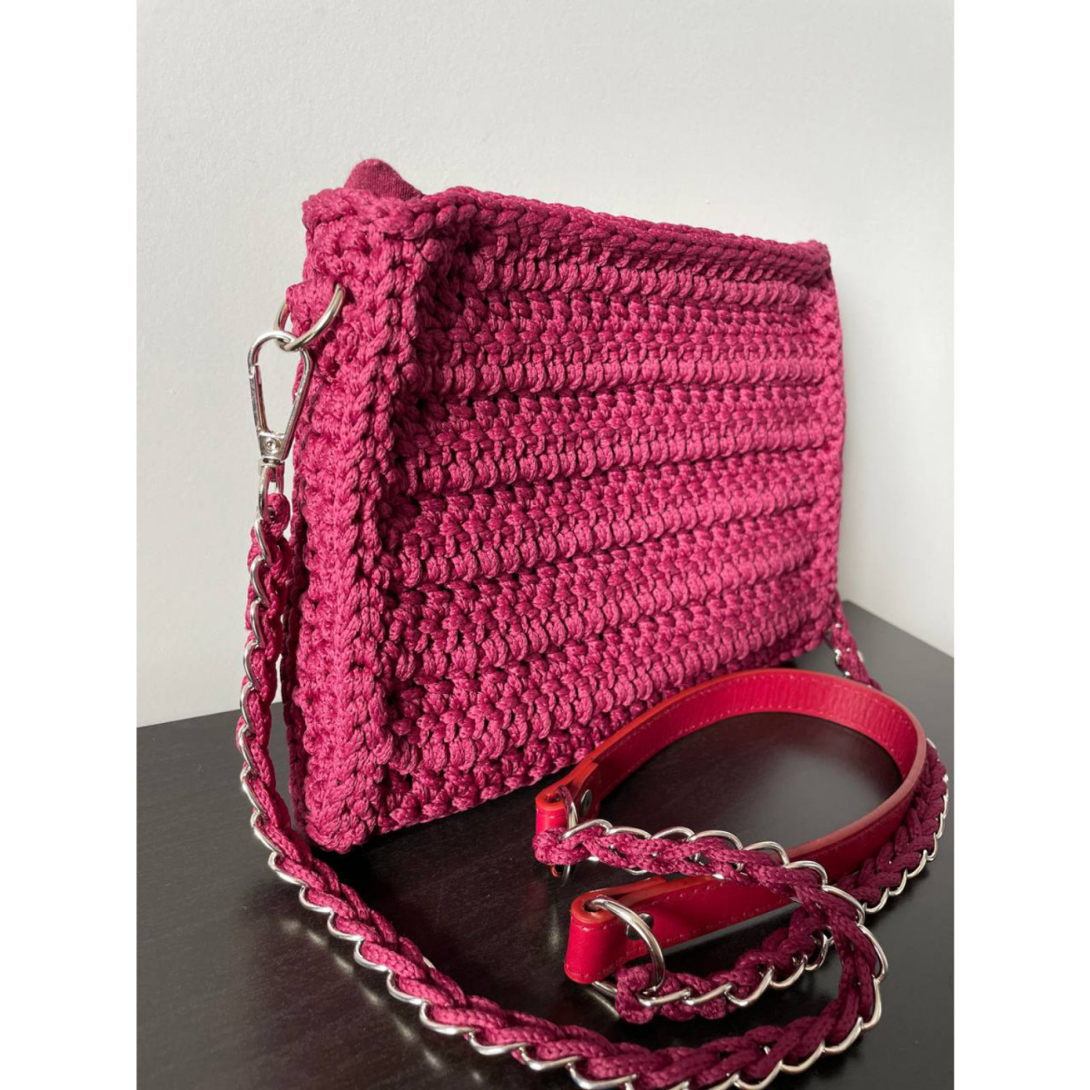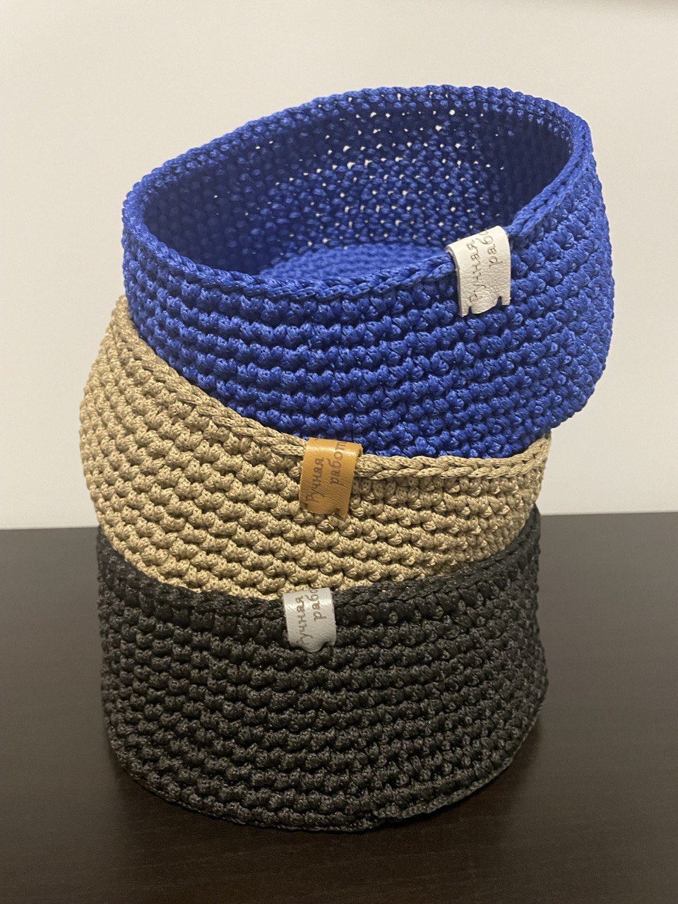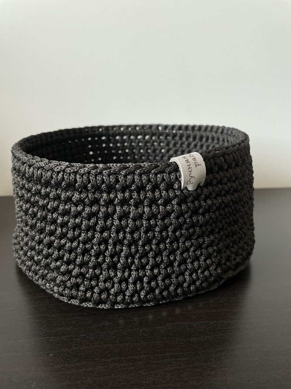 Корзина связана вручную из полиэфира, не боится влаги. Она хорошо держит форму, но при этом достаточно гибкая.