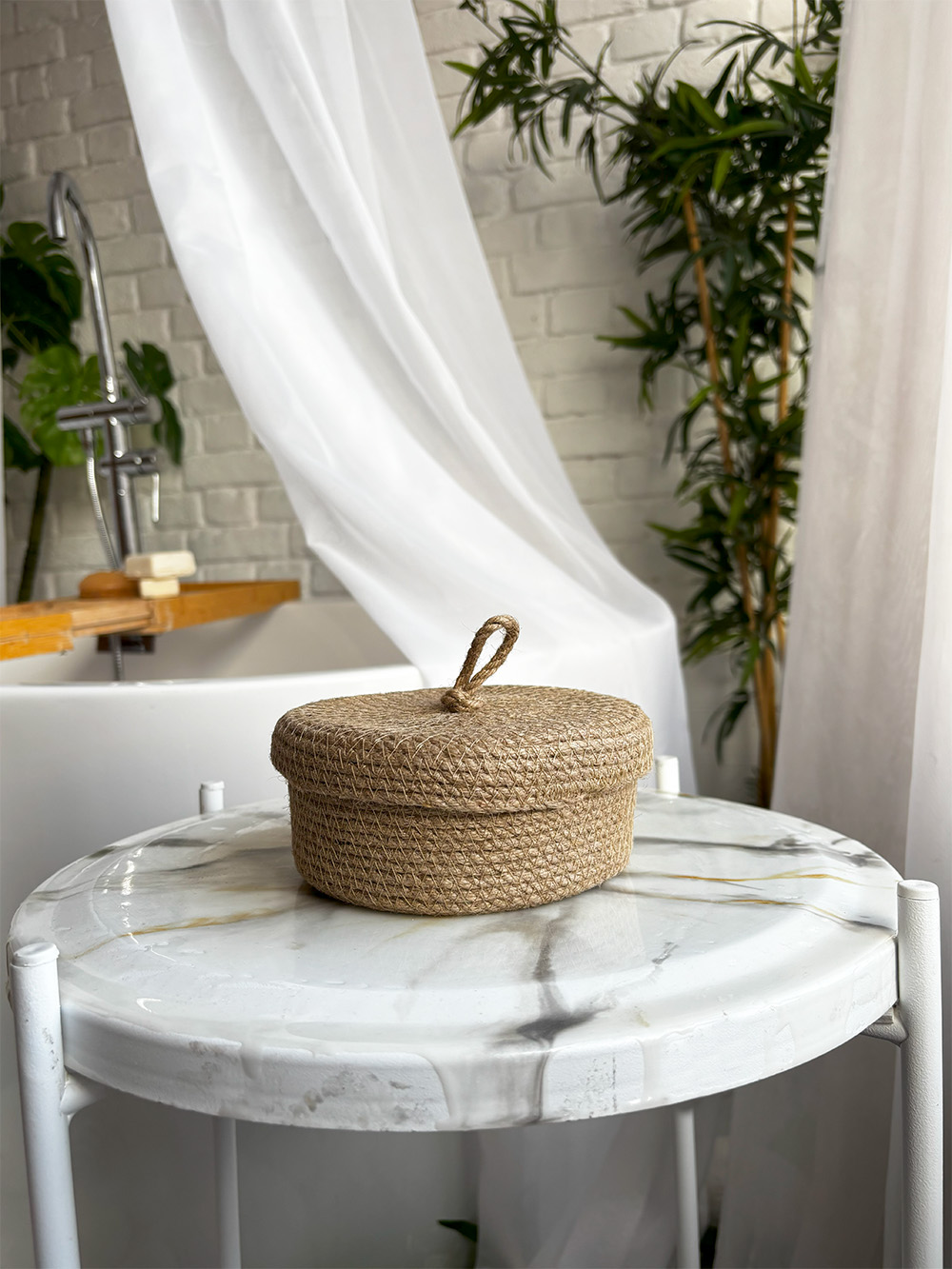 Корзиночка изготовлена из джута в технике зигзаг. Размер 13х6 см. Корзиночка подходит для хранения мелочей, аксессуаров, украшений, заколок и т.д.