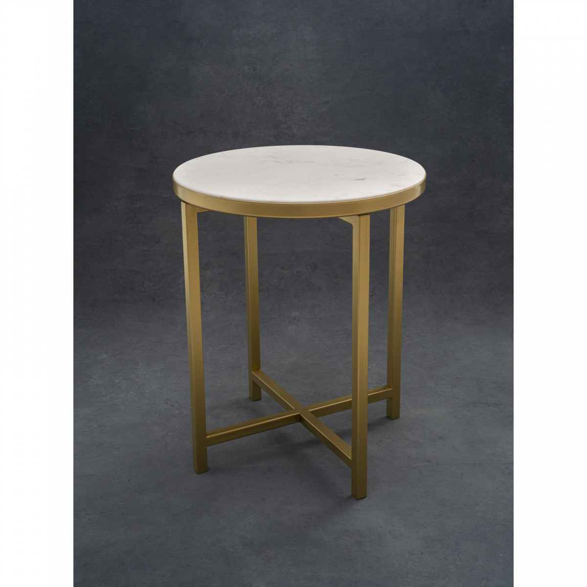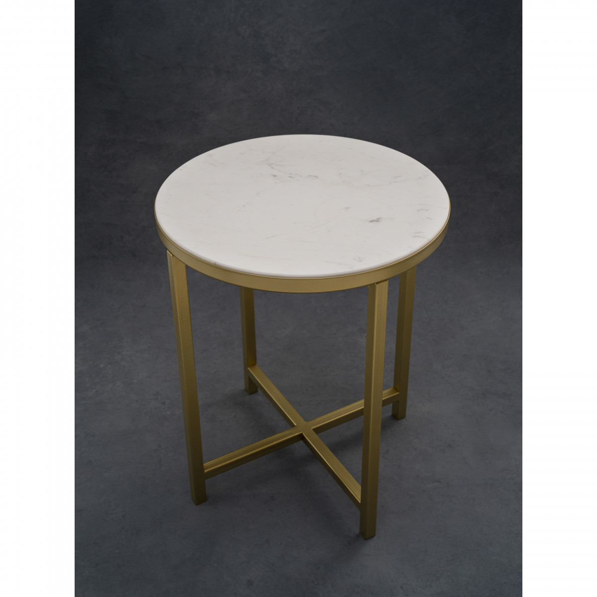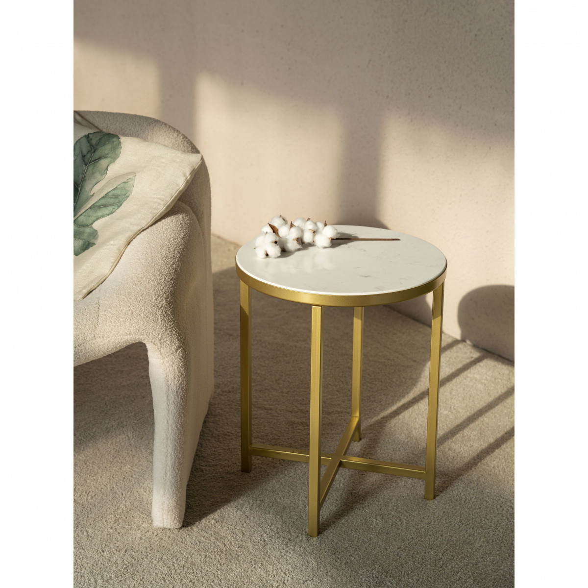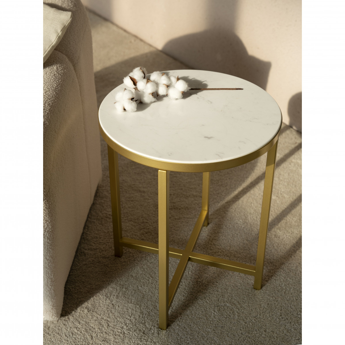 Интерьерный столик круглый с белой мраморной столешницей 44 см золото