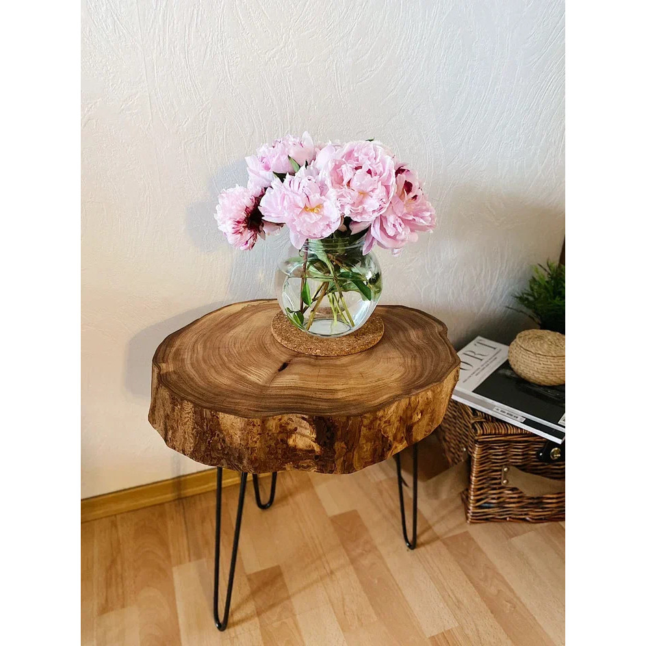 Кофейный столик из поперечного спила дерева, покрывается специальным маслом с твердым воском, которое сохраняет природную красоту древесины и приятные ощущения от соприкосновения с изделием. Будет актуален в гостиной, спальне, кабинете. Такой столик наполняет интерьер уютом и гармонией.