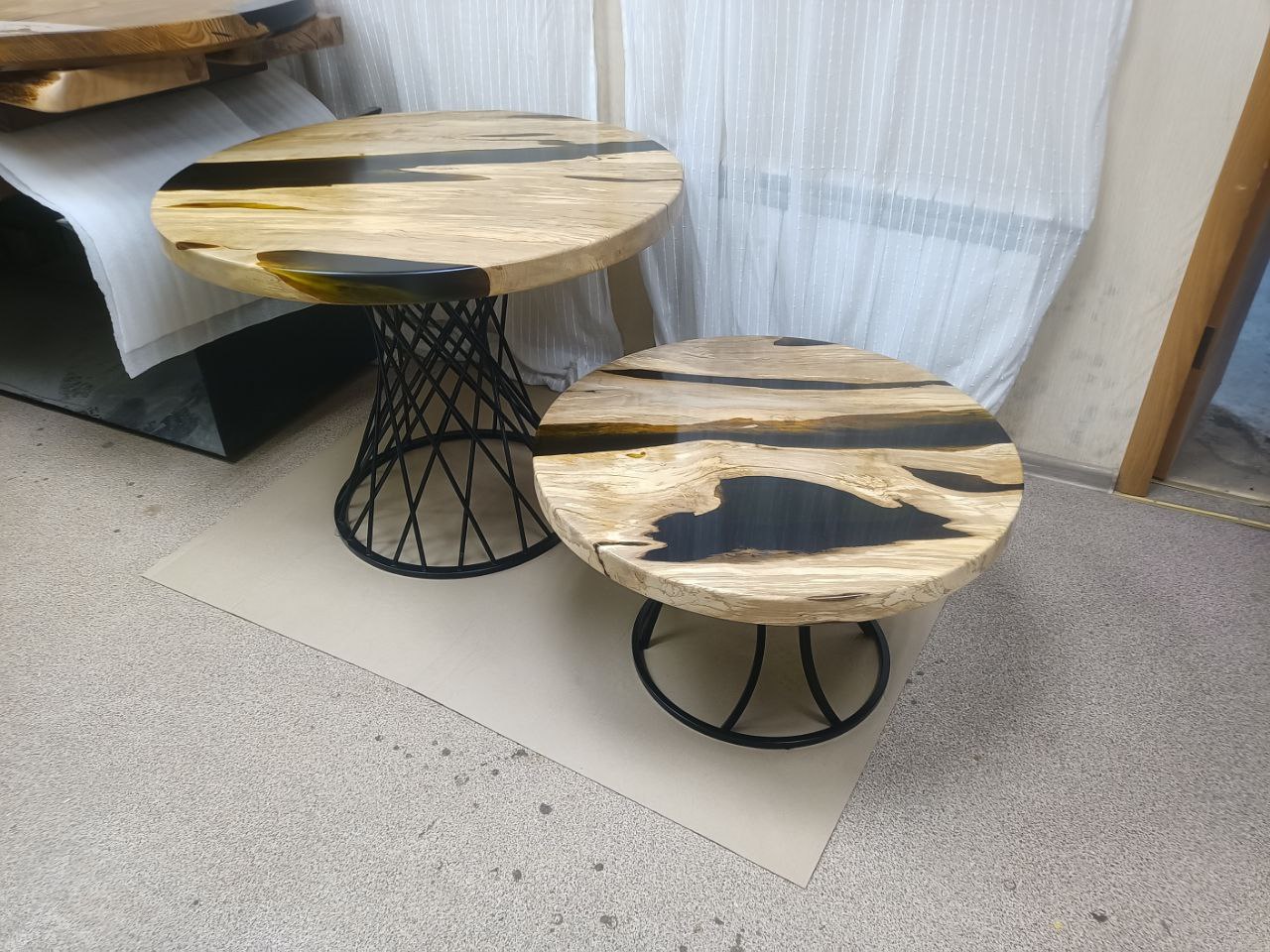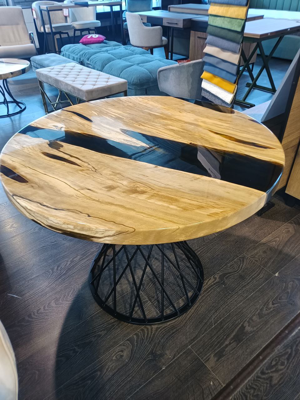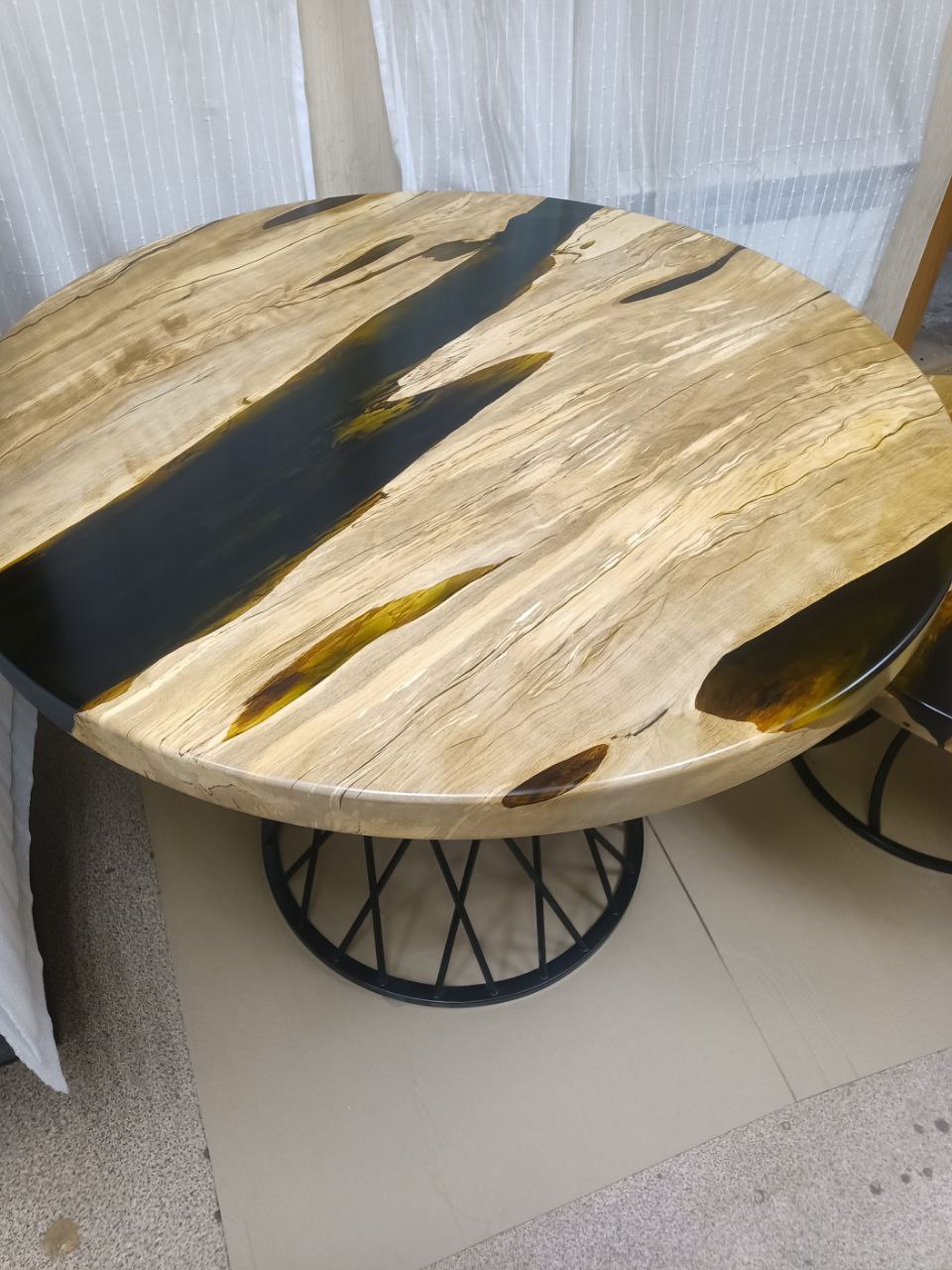 Круглый обеденный стол из массива граба и эпоксидной смолы диаметром 1м. Возможно изготовление на заказ под Ваш интерьер