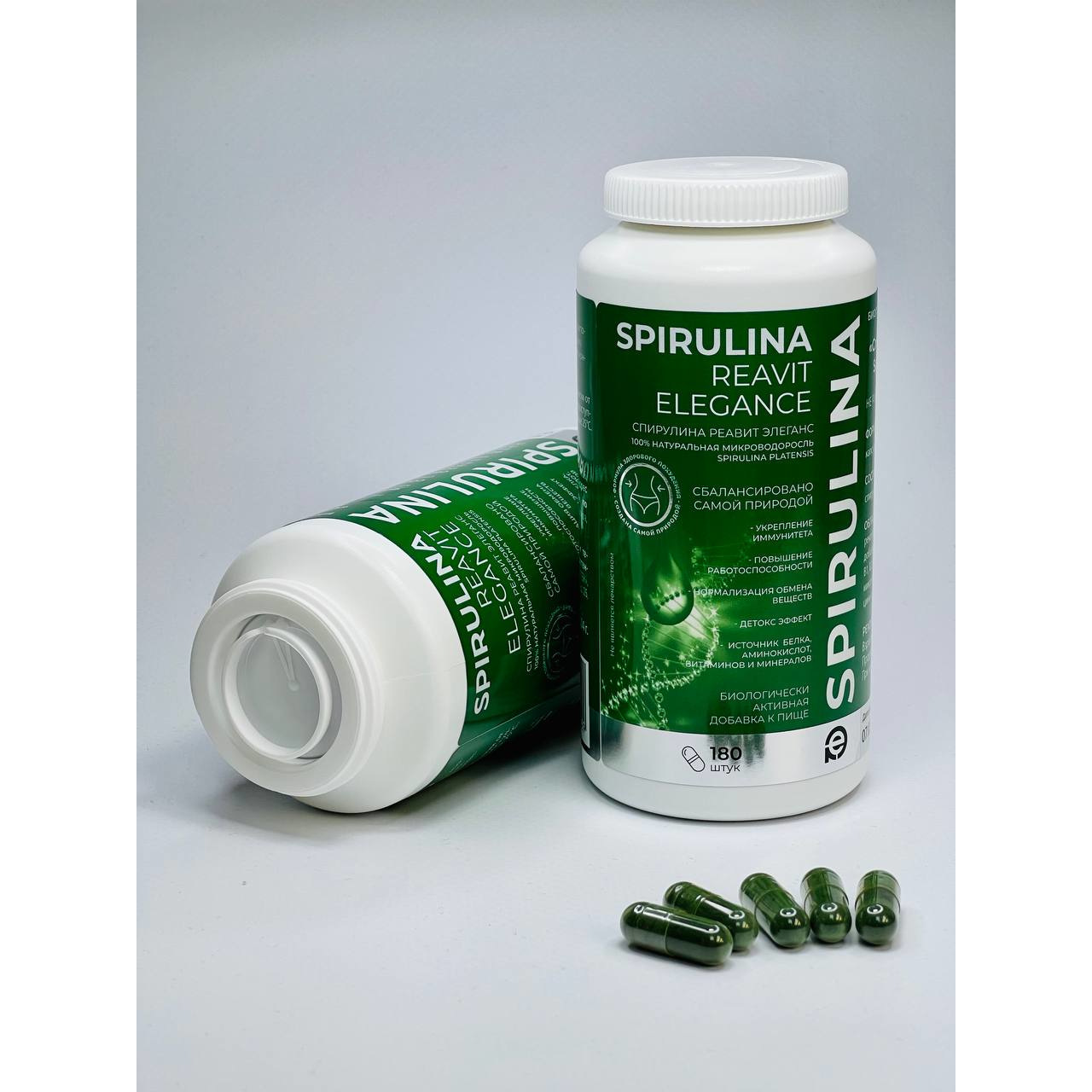 Прозрачные капсулы (без диоксида титана) Спирулина Реавит Элеганс содержат экологически чистую спирулину без добавок и консервантов. Регулярный прием БАД Спирулина Реавит Элеганс способствует:
